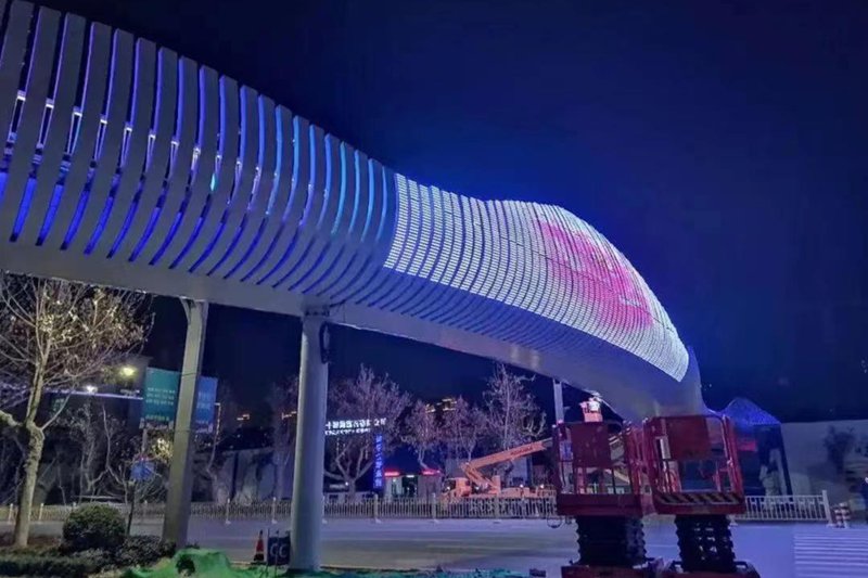 燈光屏裝置利用LED燈光系統(tǒng),可以呈現出豐富的色彩和動態(tài)效果。根據行人的移動,燈光可以變換顏色、亮度和圖案。例如,當行人走過時,燈光可以像波浪一樣隨之起伏,或者形成一條光帶,跟隨行人的步伐。